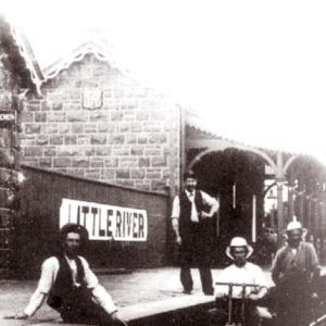 This locally famous photo was taken in 1909. The fellow on the tricycle with white top is Archie Boadle and the guy standing on the platform with the white shirt is Tom McLean (snr). Oth